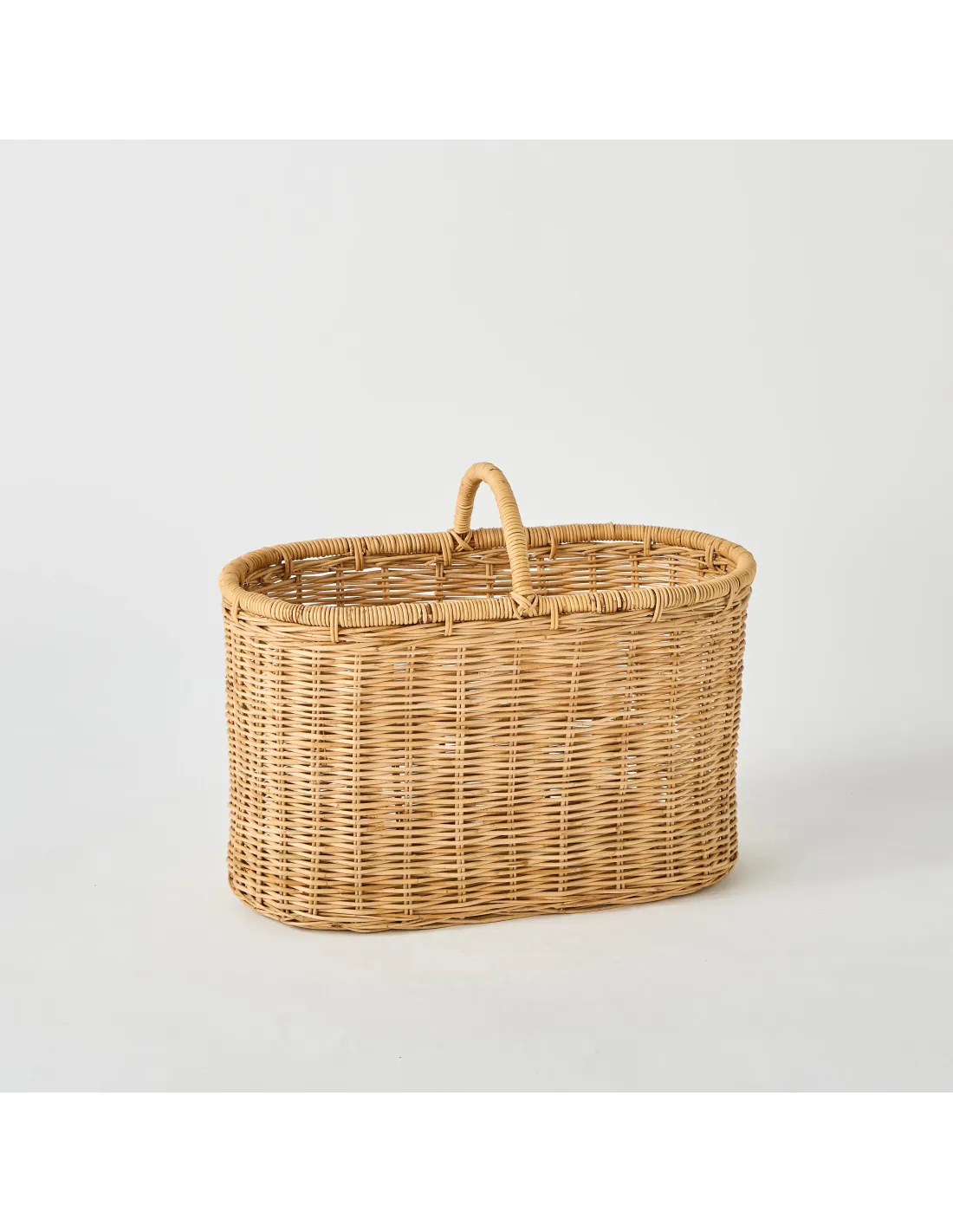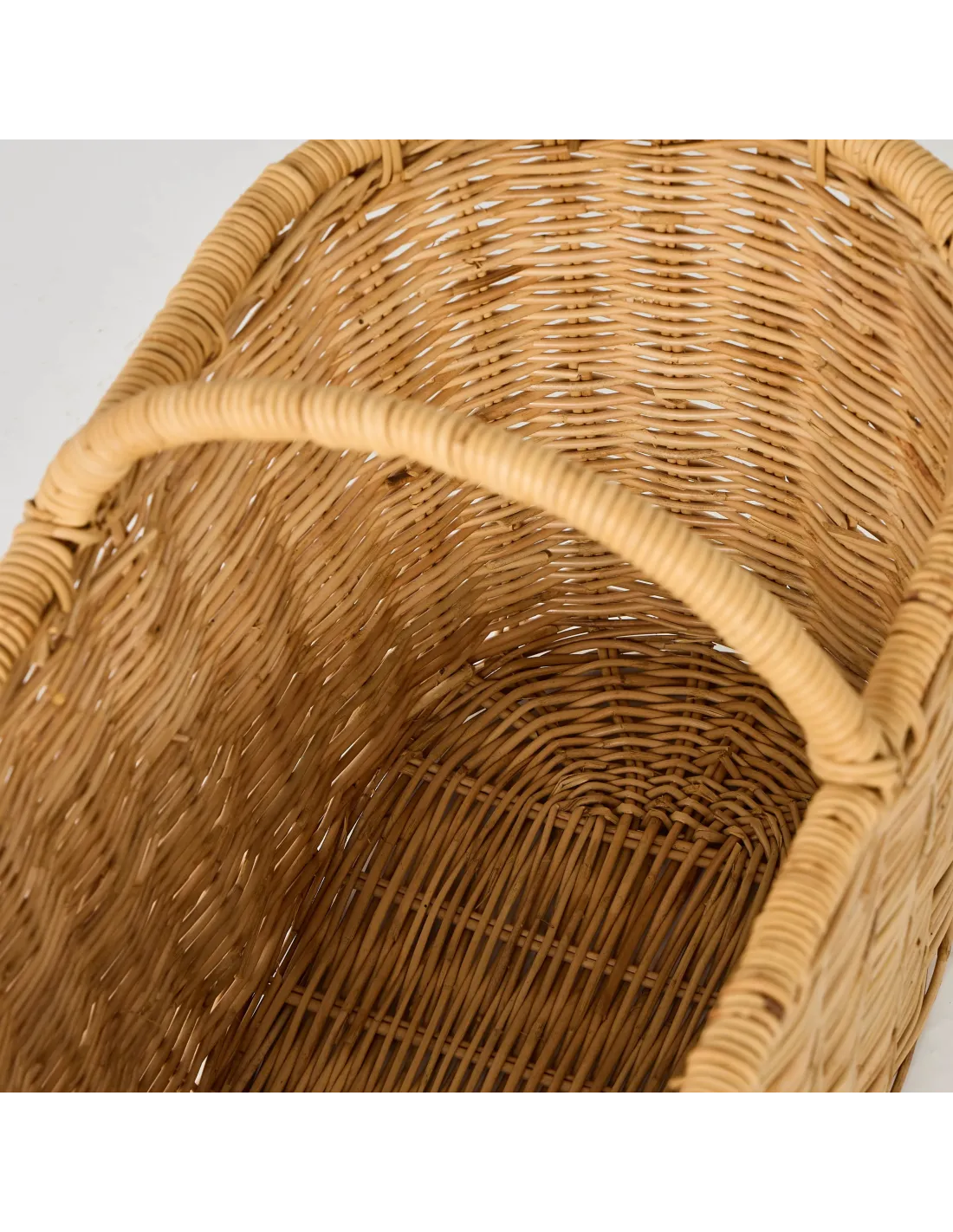 Tressage en rotin naturel . Hauteur 41 cm (avec anse) 29 cm (panier seul) x largeur 27 cm x longueur 49 cm. Poids 800 g. Fabrication Vietnam.