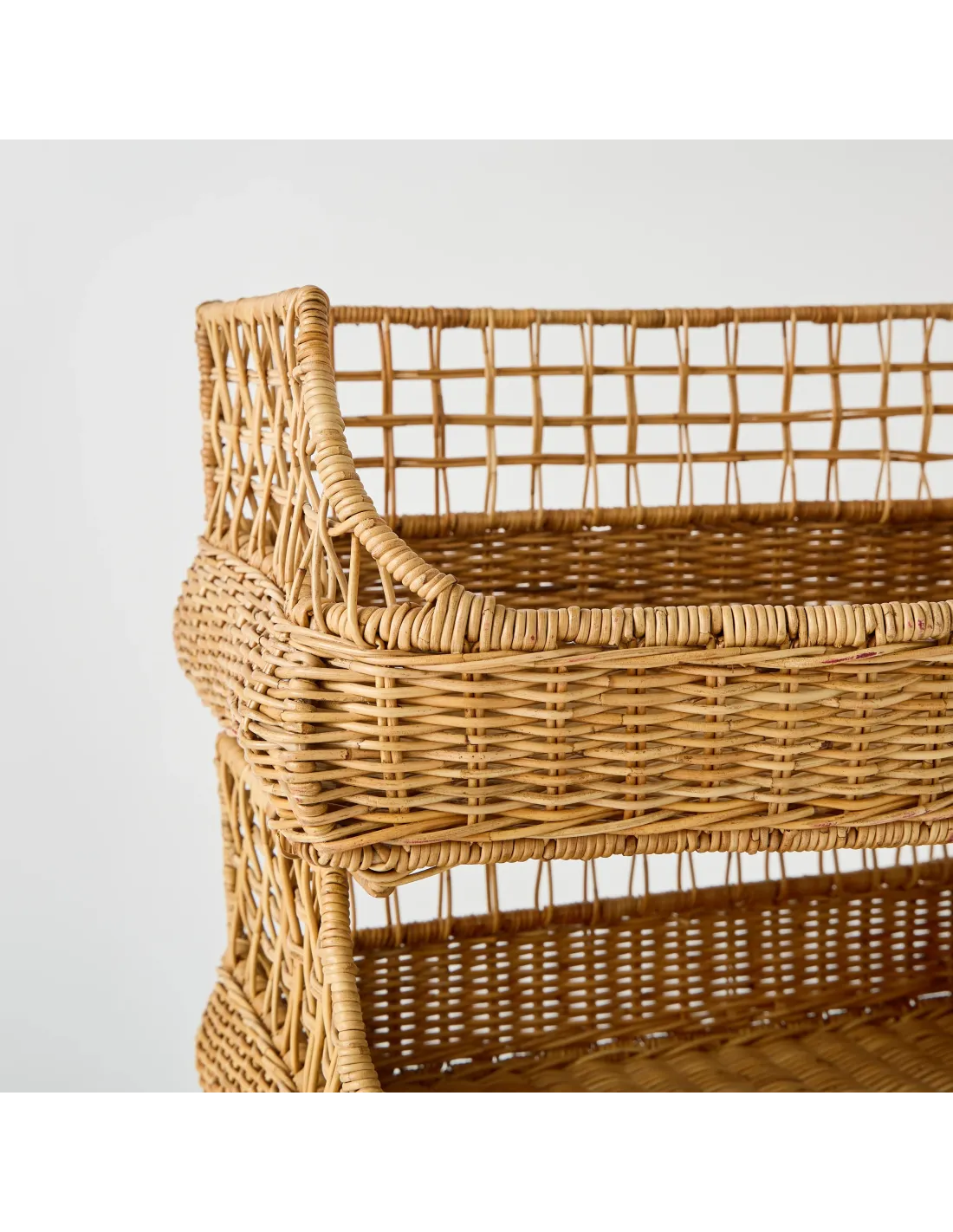 Tressage en rotin naturel sur structure métal . Hauteur totale 65 cm x largeur 34 cm x longueur 43 cm. Poids total 5 kg. Fabrication Indonésie.