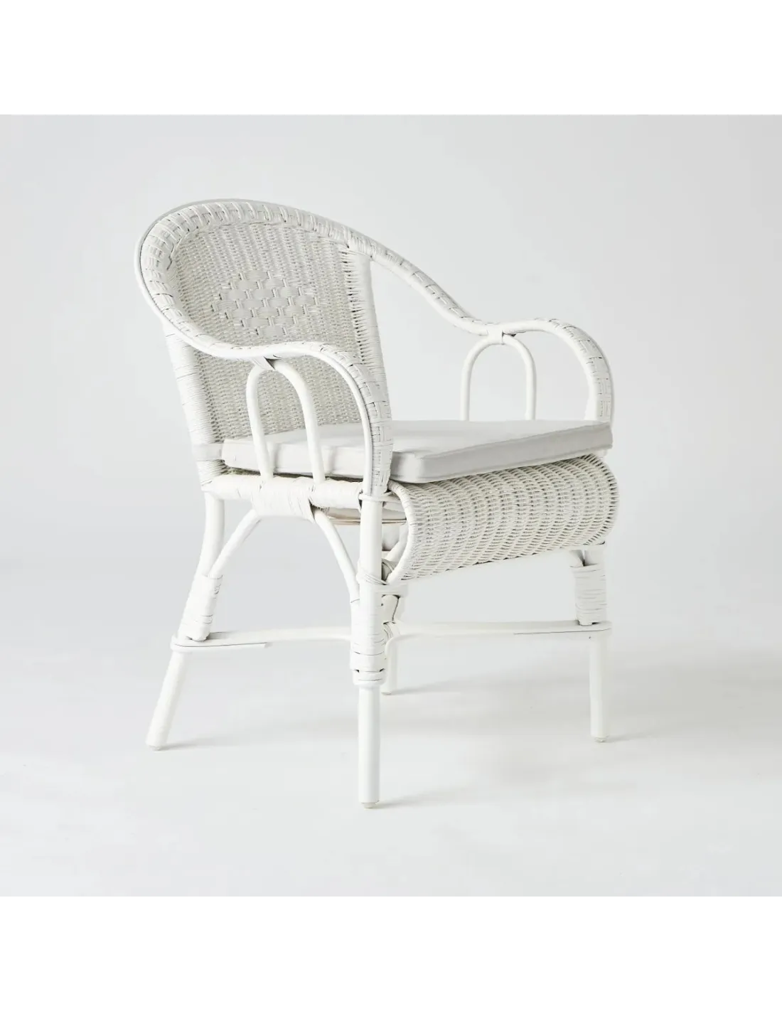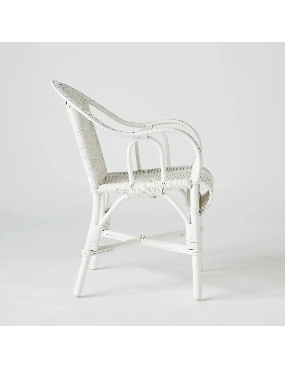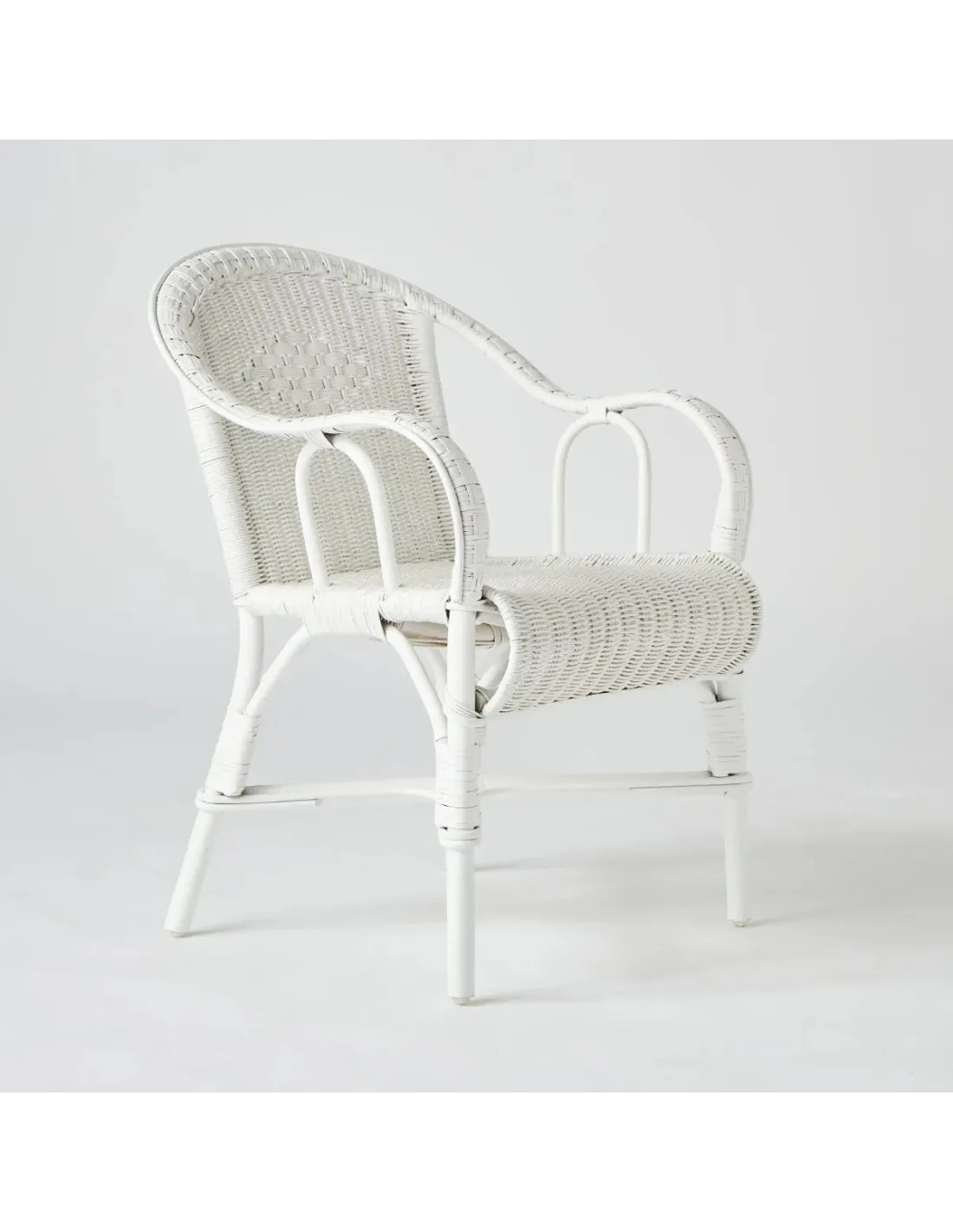 Le fauteuil Primavera en rotin finition "laqué blanc", est LE modèle emblématique du rotin à la française. Très populaire dans nos campagnes au début des années 1900, il était vendu à l'époque par les colporteurs qui allaient de village en village. Léger et robuste, c'était parfois le seul élément de confort des foyers modestes : pour tricoter, fumer, écouter la TSF, lire au coin du feu, ou bavarder sous le pommier... Confortable, simple et robuste, il reste très actuel. On s'en servira de fauteuil d'appoint, mais sa hauteur d'assise permet de l'utiliser aussi autour d'une table de repas avec un coussin d'appoint.