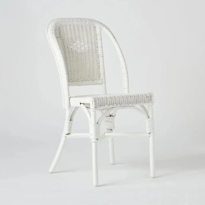 La chaise en rotin tressé laqué blanc Primavera convient à un usage privé et professionnel (hôtels, cafés, restaurants...).