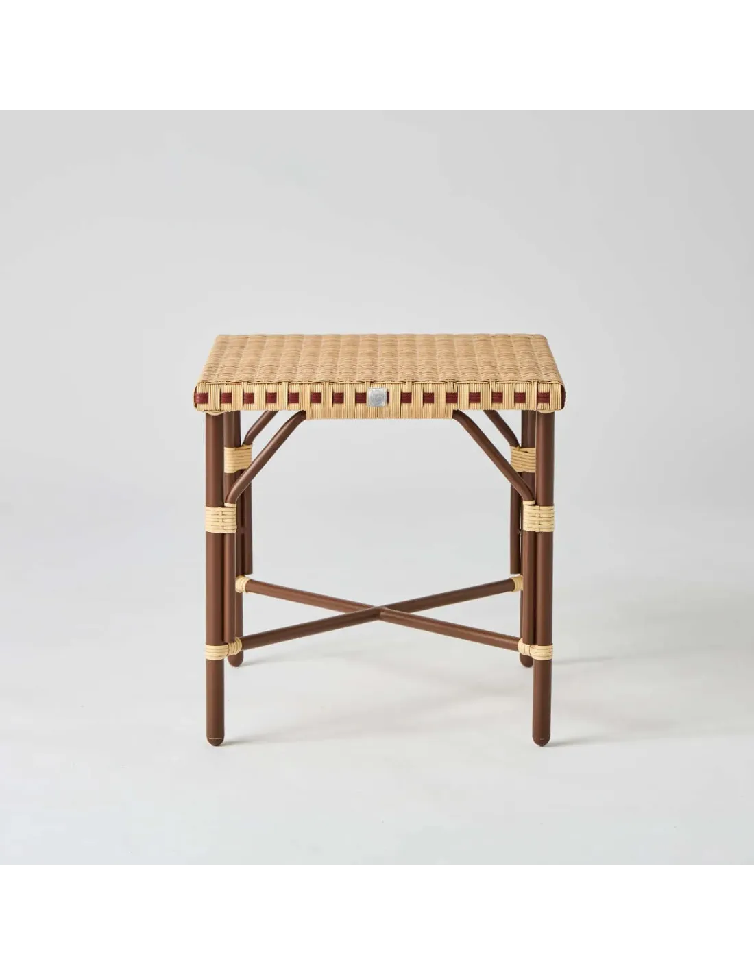 Dimensions hors tout: haut 50 x larg 50 x long 50. Poids 3 kg. Résistantes aux aléas climatiques : pluie, neige, soleil, sel marin, et même au chlore de piscine, nos collection en rotin synthétique ont été conçues pour un usage en extérieur : résine de synthèse de type PEHD (polyéthylène haute densité) traitée anti UV, et garantie entre -15°C et +55 °C, structure en aluminium thermolaqué. Livré monté. Fabriqué en Indonésie. Plateau de verre proposé en option.