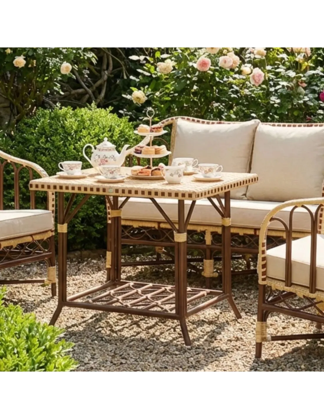 La table basse rectangulaire en résine tressée Belle Epoque convient à un usage privé et professionnel (hôtels, cafés...).