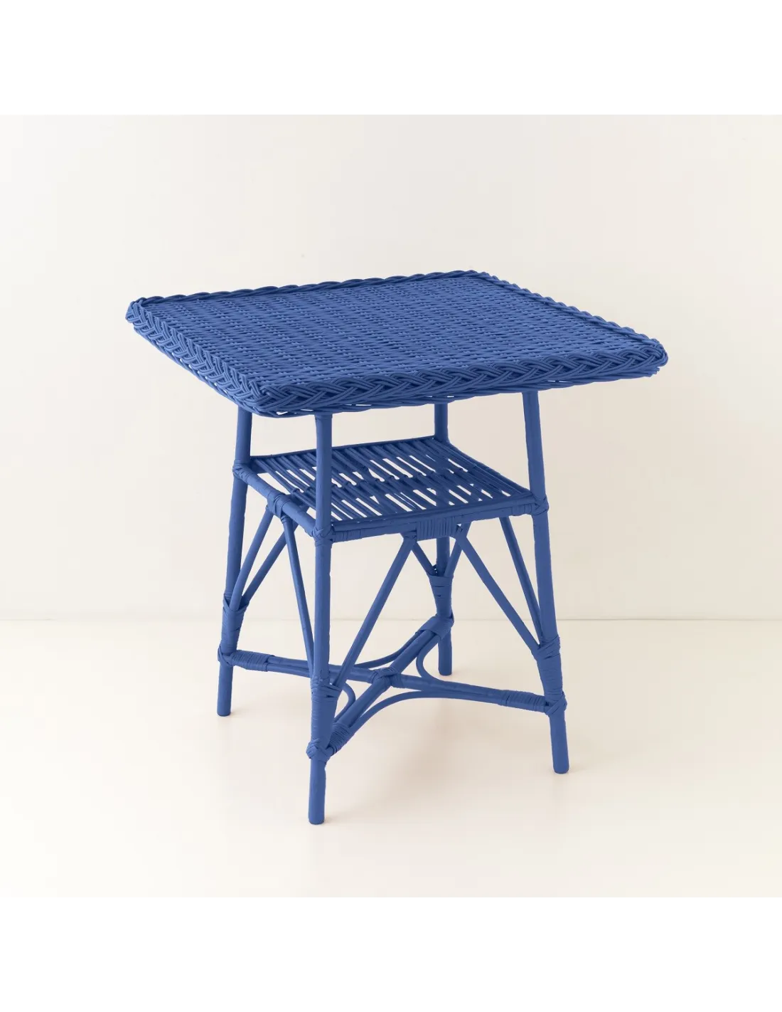 Table repas en osier 70x70 cm Mélina laqué bleu grec