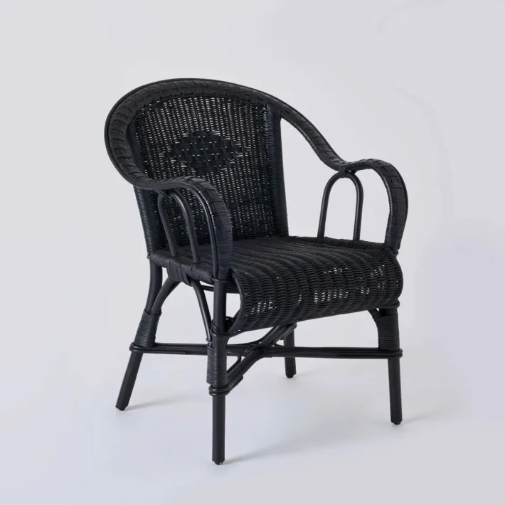 Fauteuil de table laqué noir en rotin tressé