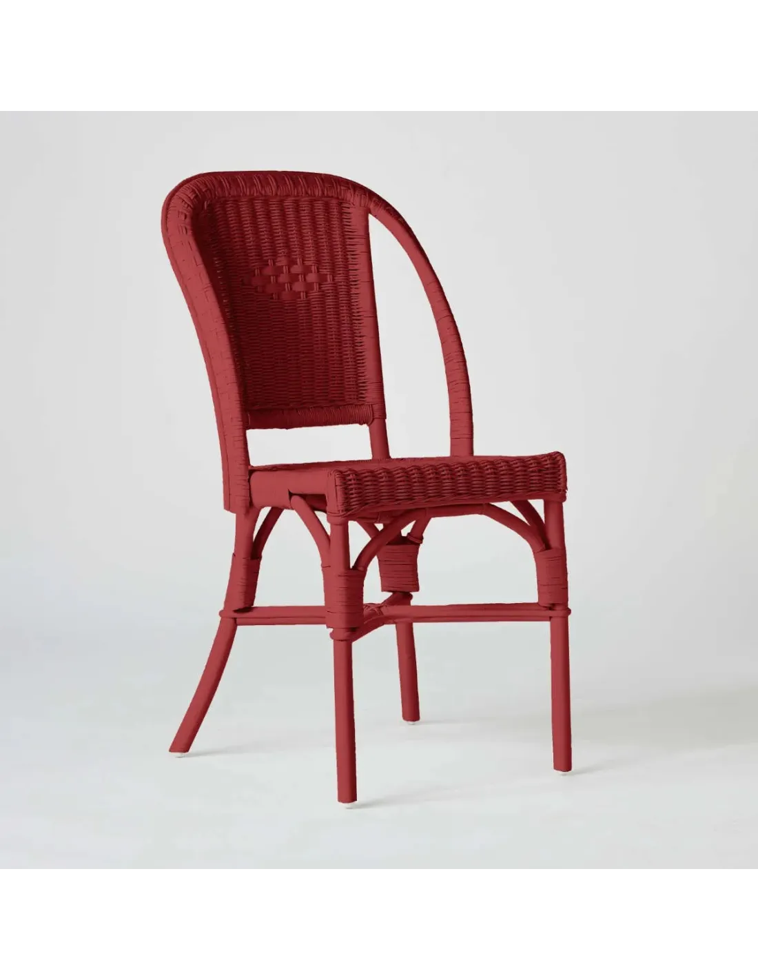 Notre chaise rotin tressé Primavera n'est pas prévue pour aller dehors, même si elle peut exceptionnellement être sortie en été. Il faut veiller à la protéger des rayons directs du soleil en la laissant à l'ombre, et la rentrer tous les soirs ou en cas d'intempéries ou de rosées abondantes le matin. Nous avons donc prévu une version renforcée : la chaise en résine Guinguette, dotée d'un tissage en rotin synthétique de couleur naturelle à la place de celui en moelle de rotin. La chaise Guinguette sera plus résistante que la chaise rotin tressé laqué Primavera, à la fois aux intempéries et à l'usage intensif, et sera donc idéale pour un restaurant ou un gîte, tout en proposant exactement la même silhouette.