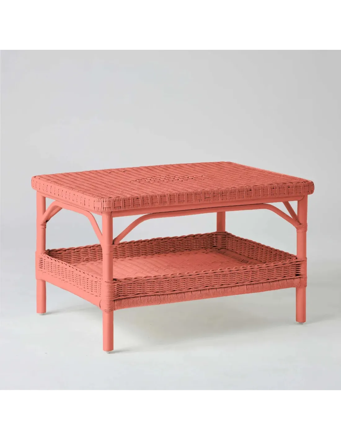 Table basse rectangulaire en rotin laqué corail