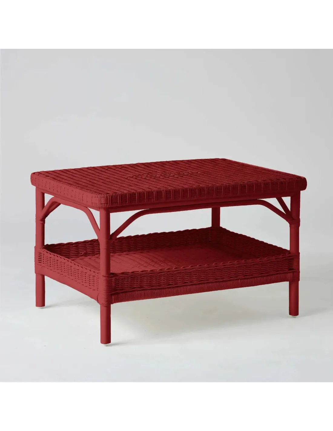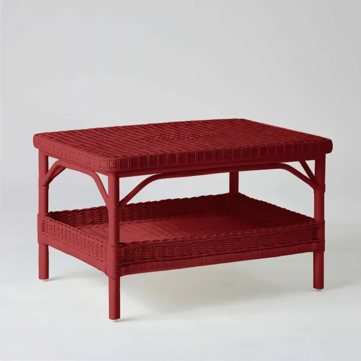Table basse rectangulaire en rotin laqué rouge rubis
