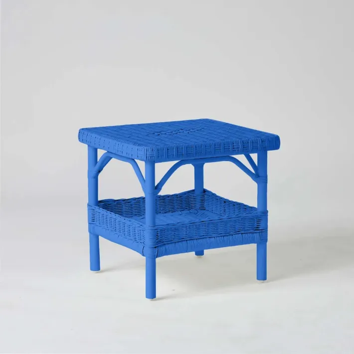 Table basse carrée en rotin laqué bleu grec collection PRIMAVERA