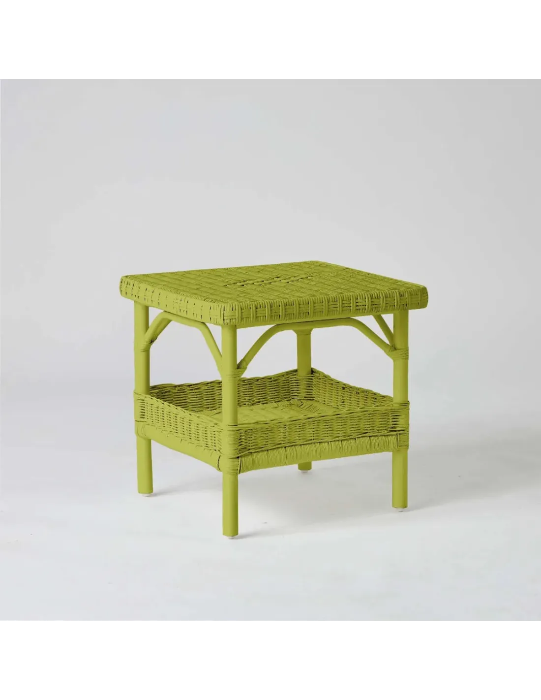 Table basse carrée en rotin laqué vert gazon collection PRIMAVERA