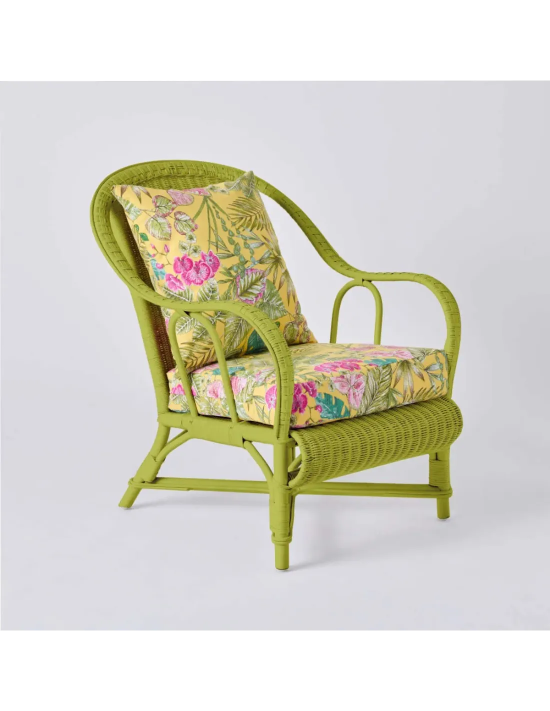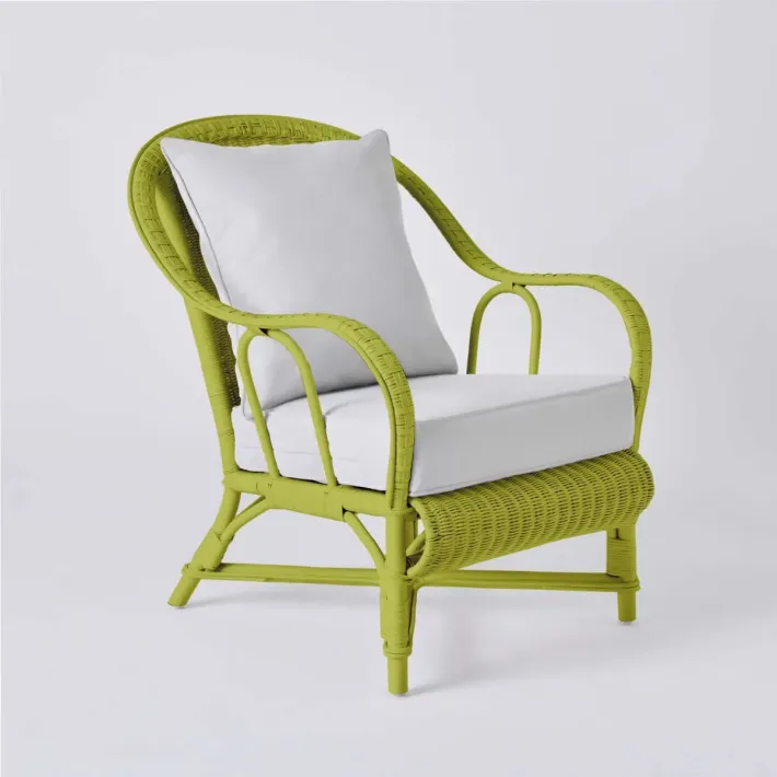 Le fauteuil en rotin laqué couleur PRIMAVERA est inspiré des fameux fauteuils grand-père en rotin, mais présenté ici dans sa version grand confort. À hauteur d'assise normale de salon, il est équipé d'un vrai coussin déhoussable. Léger, ce fauteuil en rotin se déplace très facilement et est prévu pour vous rendre la vie facile. Pas ou peu d'entretien, utilisable au salon, en véranda.