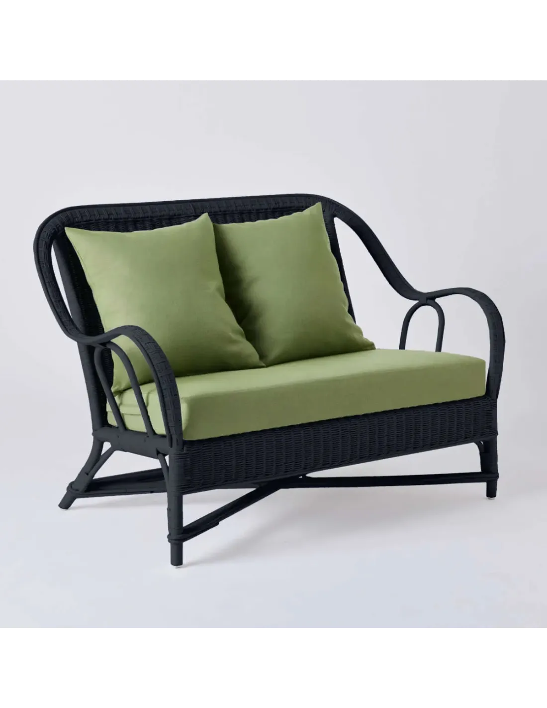 Canapé 2 places collection PRIMAVERA en rotin laqué noir avec tissu vert