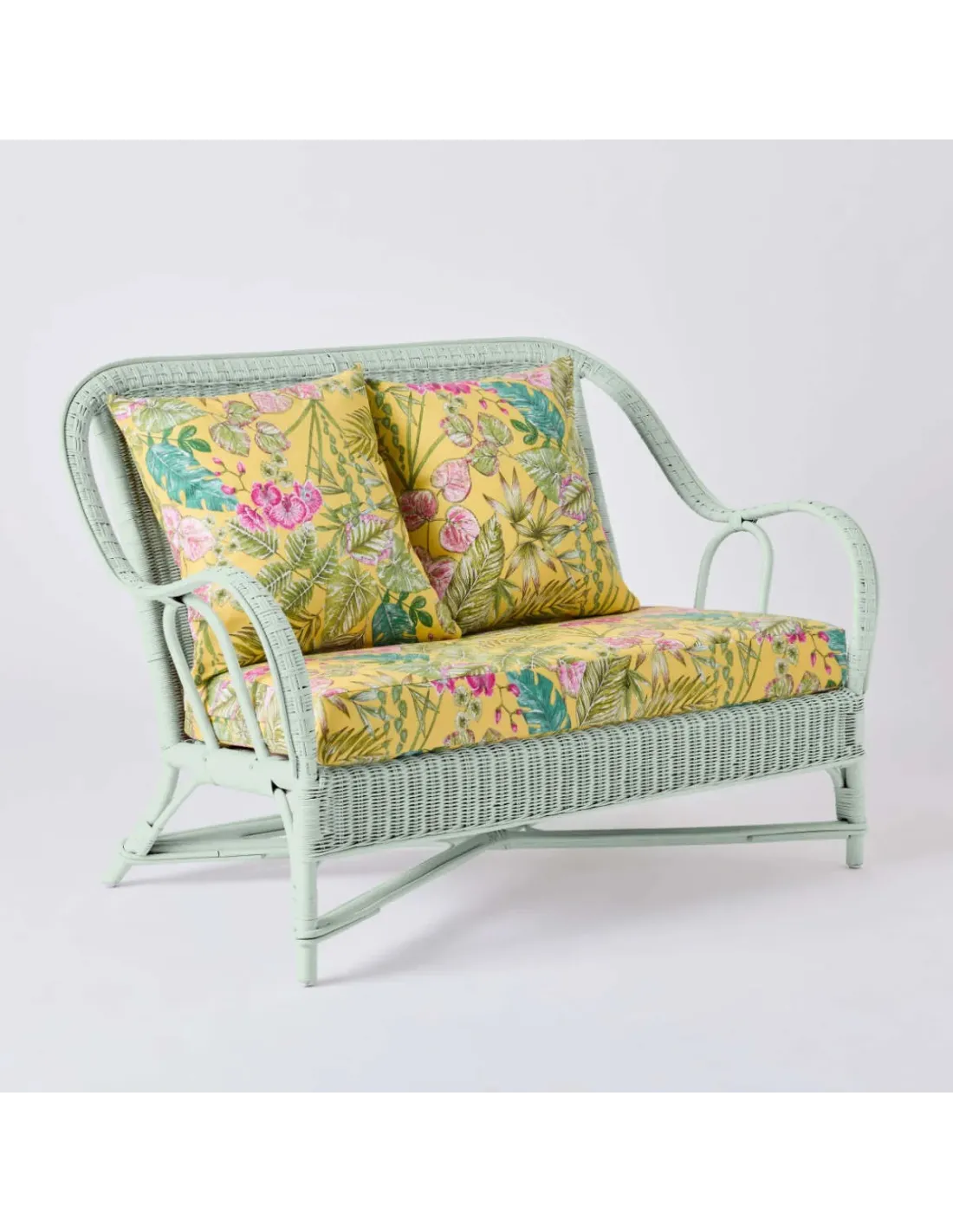 Canapé 2 places collection PRIMAVERA en rotin laqué pistache avec tissu bouquet yellow