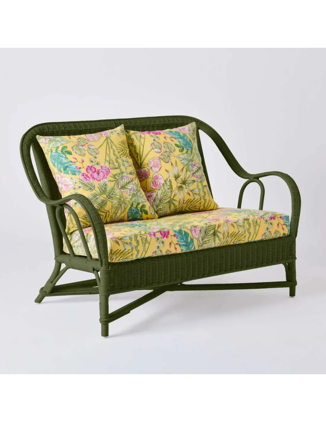 Le canapé en rotin tressé laqué couleur Primavera est inspiré des fameux fauteuils grand-père en rotin, mais présenté ici dans une version grand confort. À hauteur d'assise normale de salon, il est équipé d'un vrai coussinage déhoussable. Léger et naturel, ce canapé se déplace très facilement et saura vous rendre la vie facile. Peu ou pas d'entretien, utilisable au salon, en véranda.