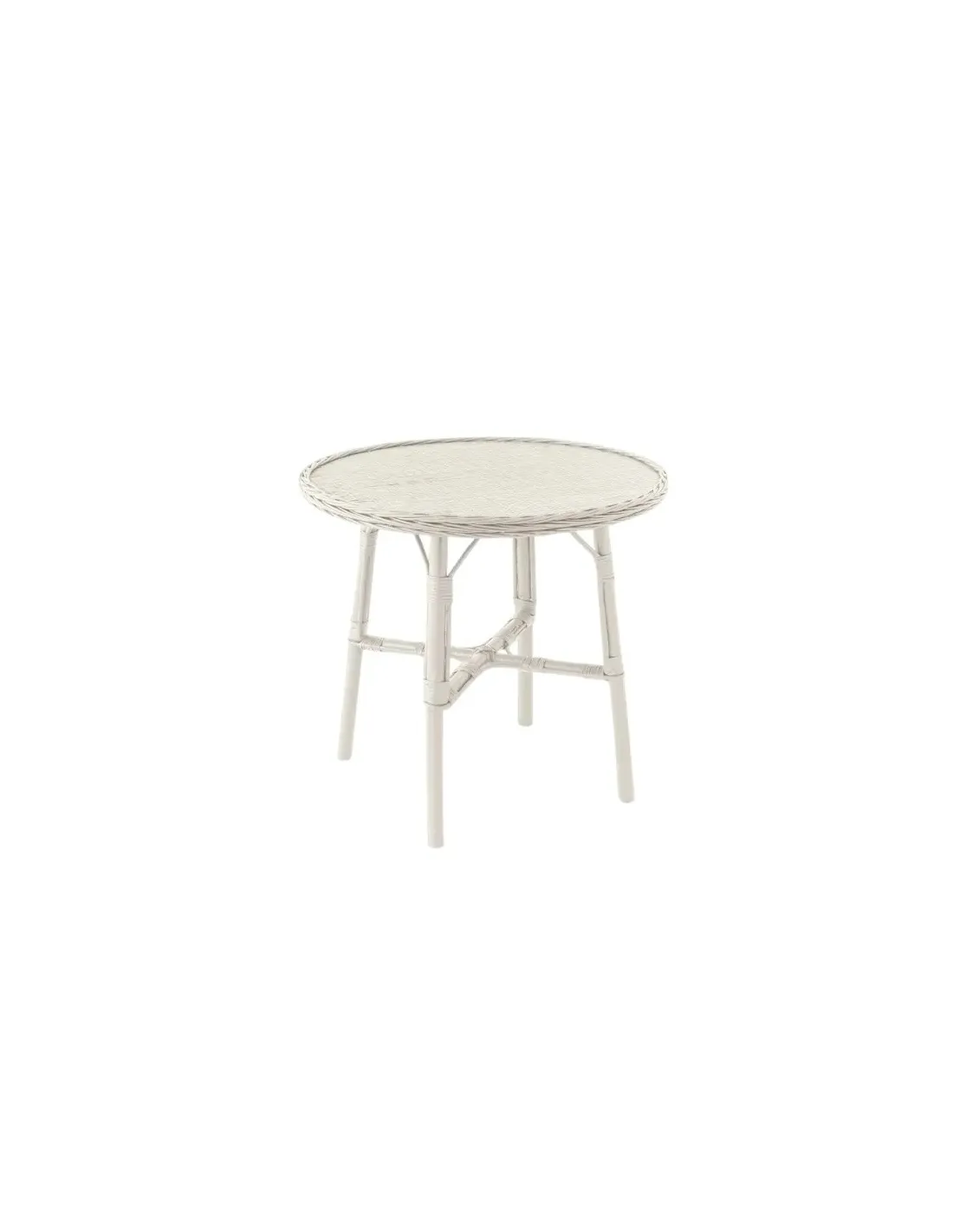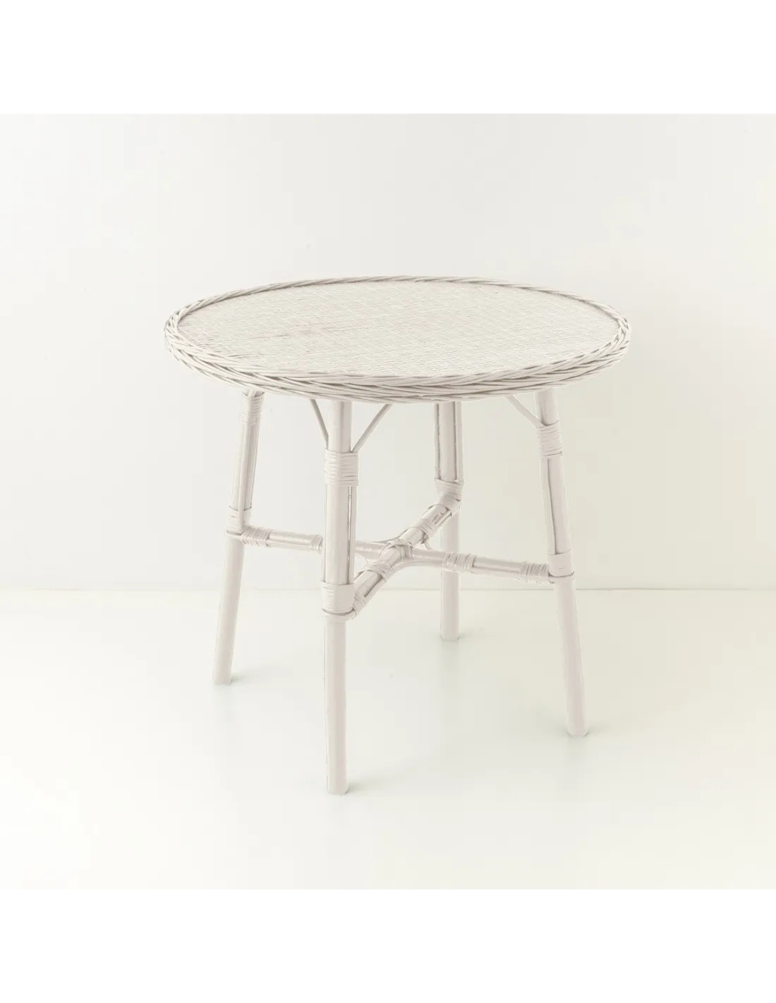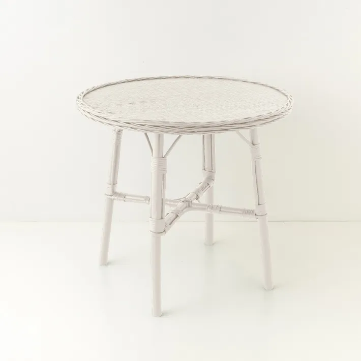 Table repas en osier diamètre 80 cm laquée blanc