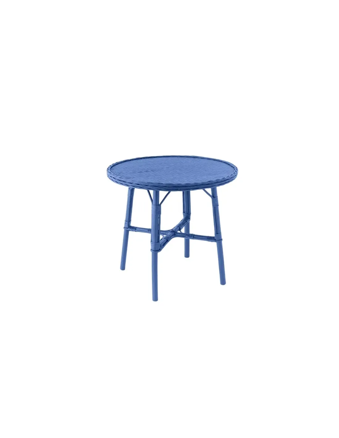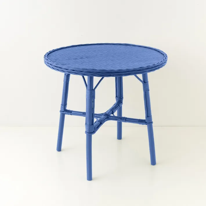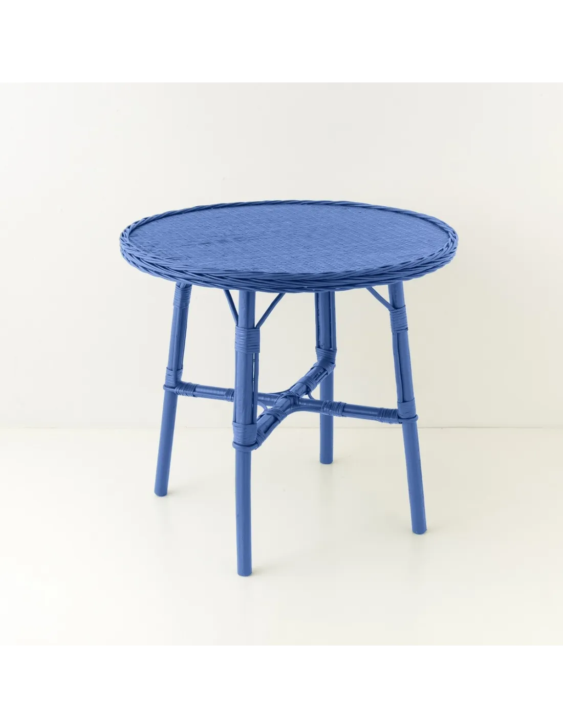 Table repas en osier diamètre 80 cm laquée bleu grec