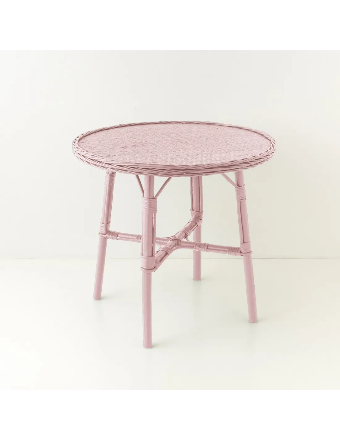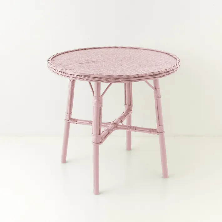 Table repas en osier diamètre 80 cm laquée vieux rose