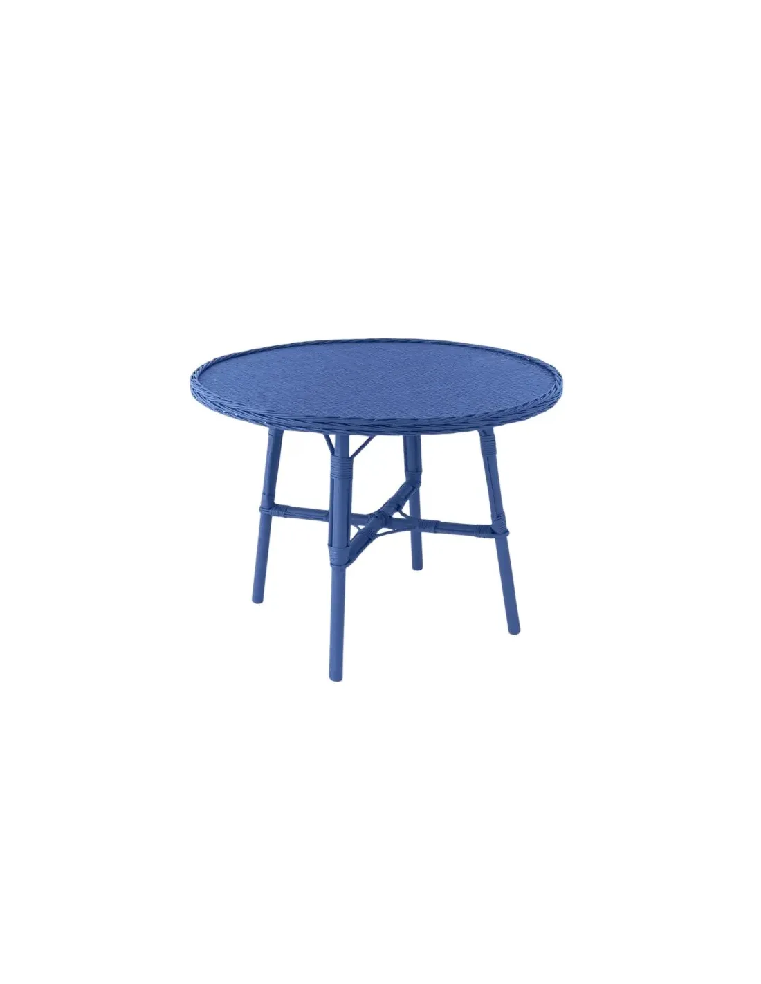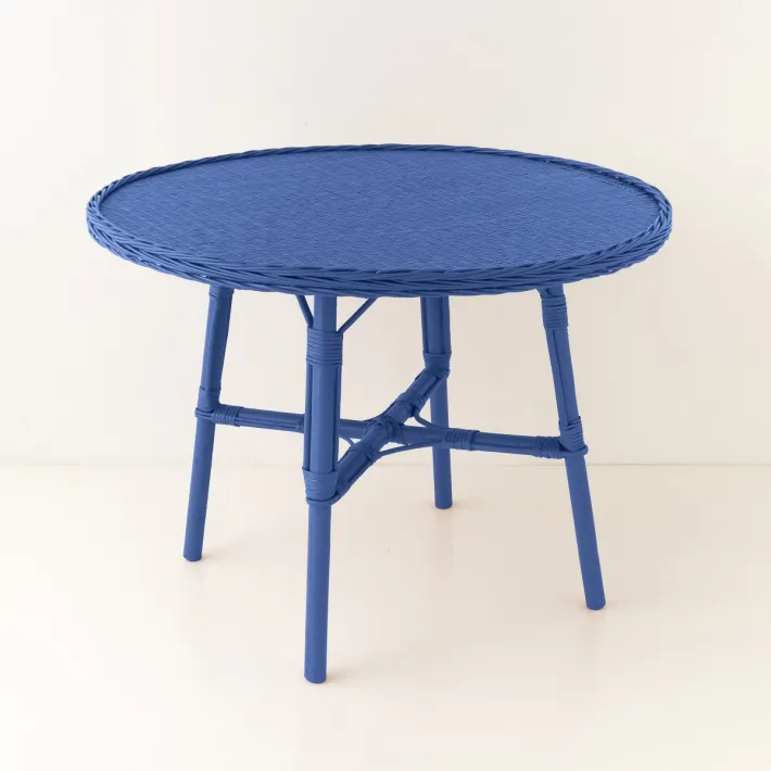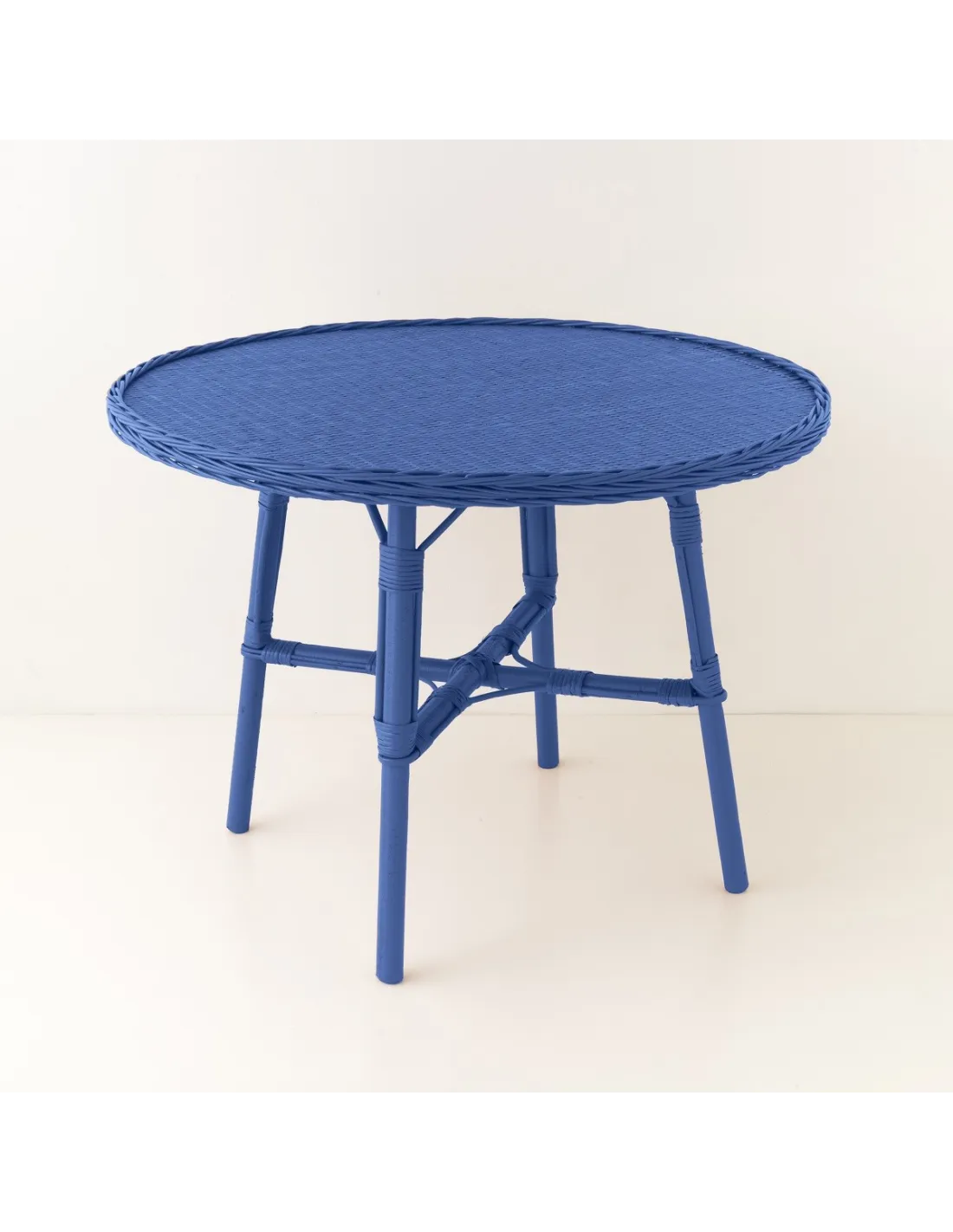 Table de repas en osier diamètre 100 Mélanie laquée bleu grec