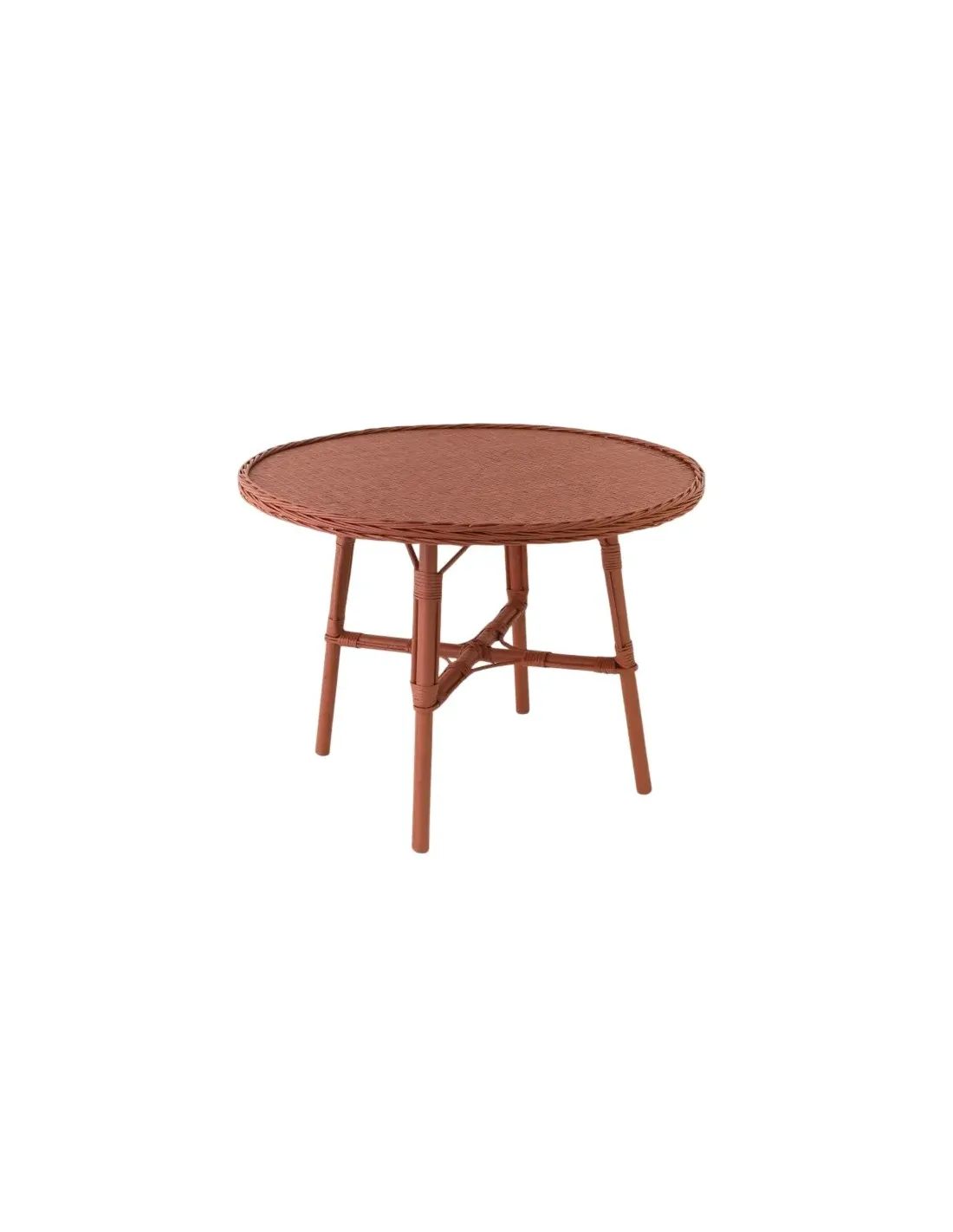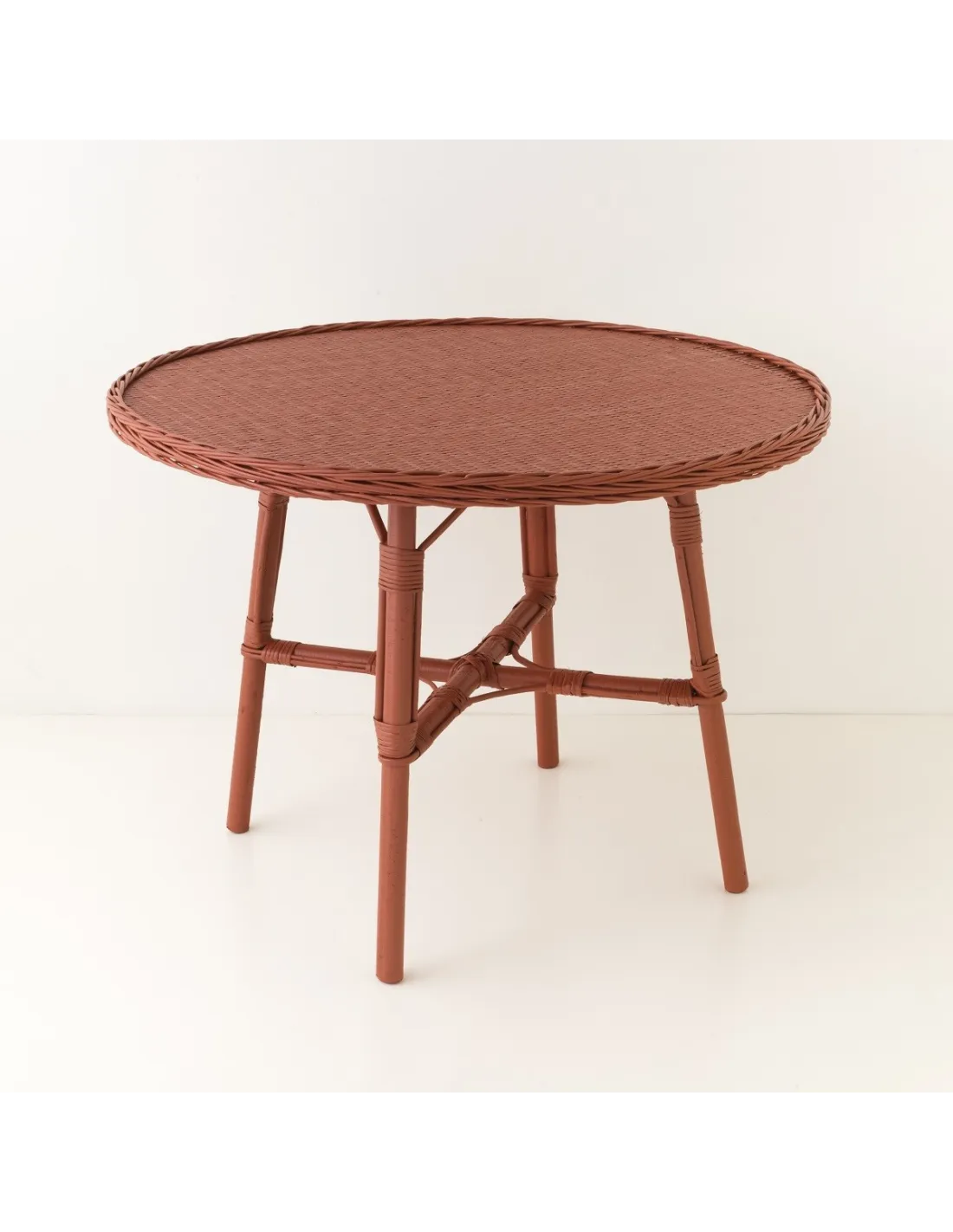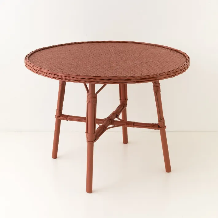 Table de repas en osier diamètre 100 Mélanie laquée brique