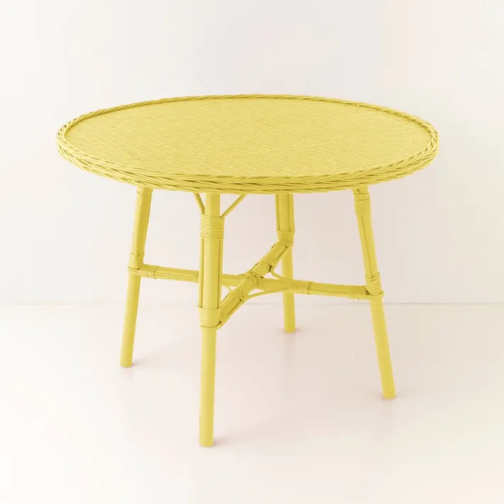 Table de repas en osier diamètre 100 Mélanie laquée jaune