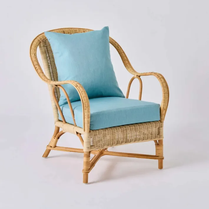 Fauteuil en rotin tressé NANTUCKET avec tissu aqua