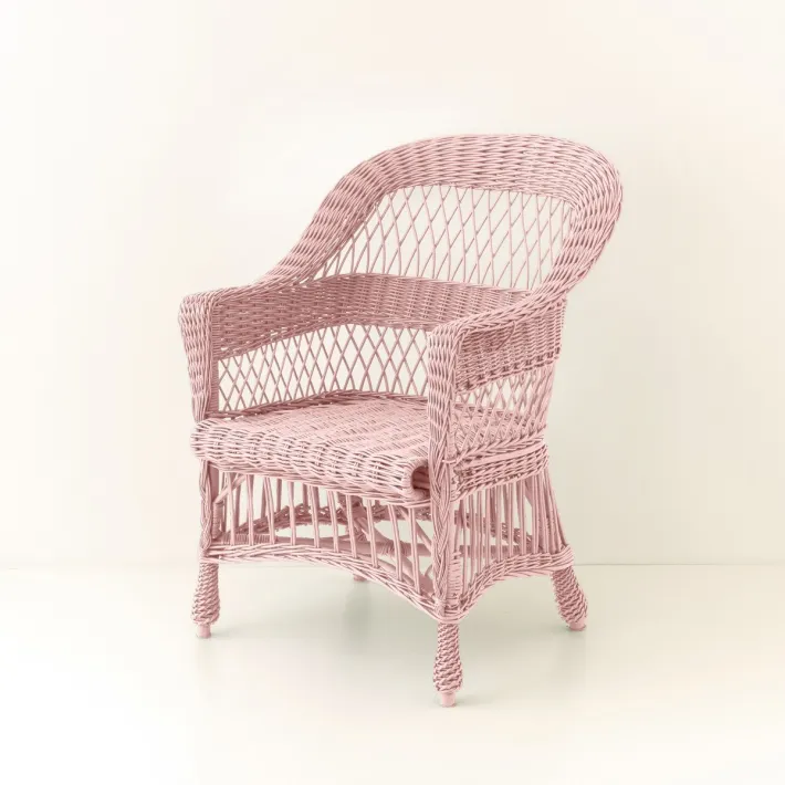 Fauteuil en osier ILONA laqué vieux rose