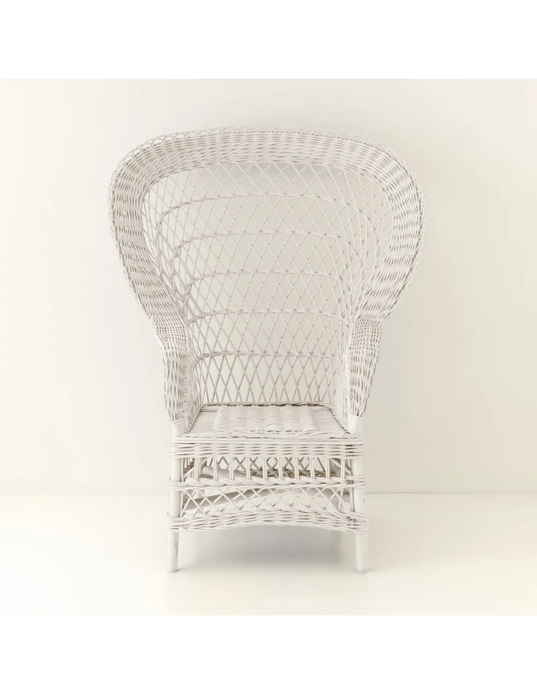 Fauteuil en osier EVENTAIL laqué blanc vu de face
