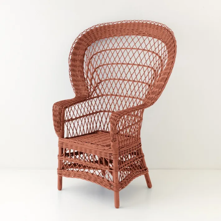 Fauteuil en osier EVENTAIL laqué brique vu de face
