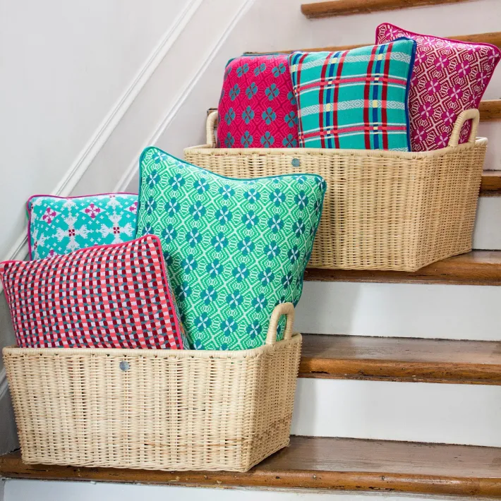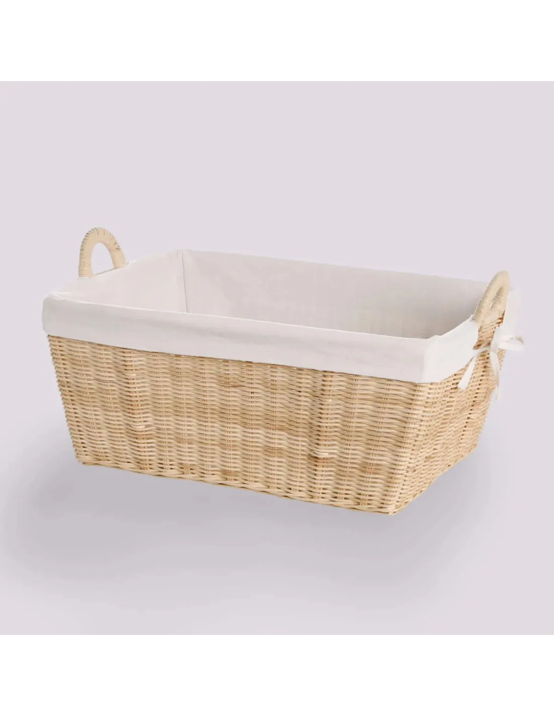 Notre manne à linge rectangulaires en moelle de rotin naturelle est tissé sur une structure en rotin naturel et estampillée KOK MAISON.