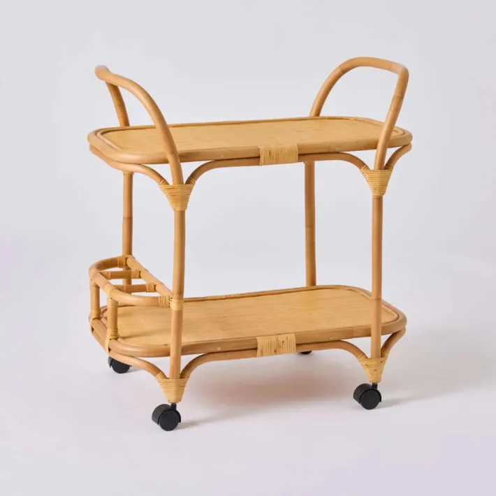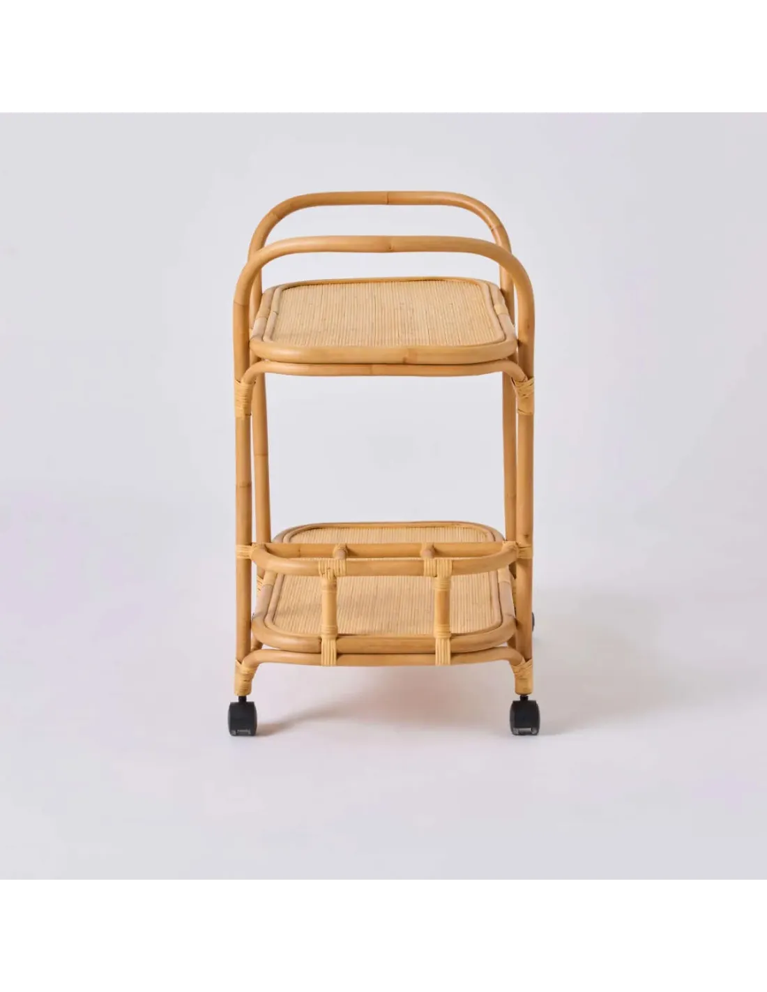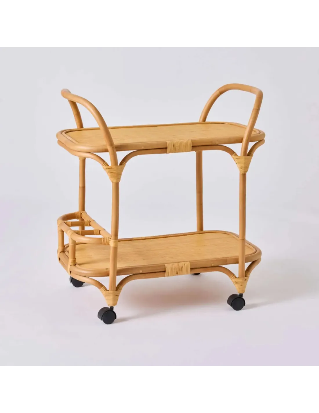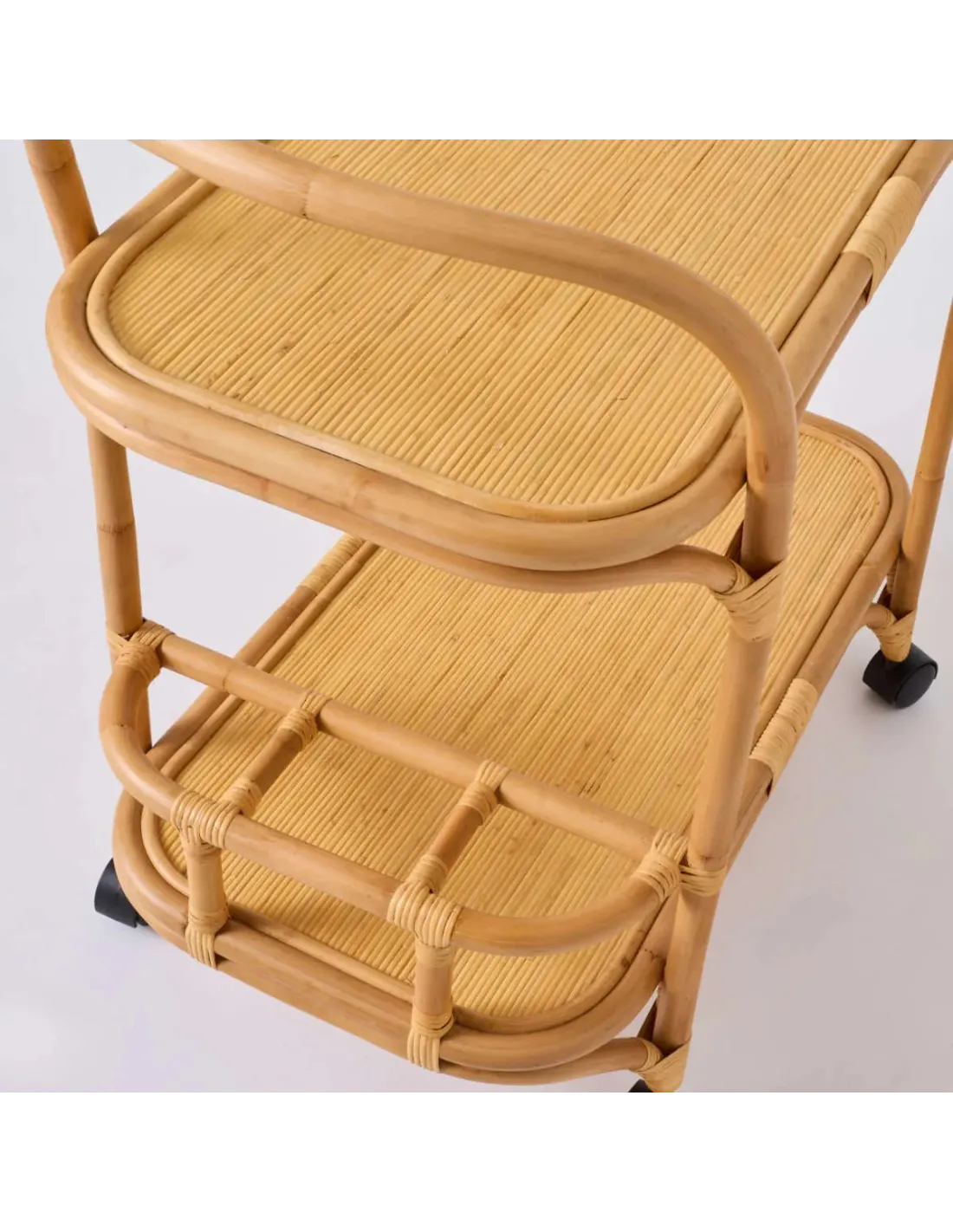 Voici la desserte roulante en rotin vintage tel que la maison KOK la proposait dans les années 60 et 70, la grande époque du rotin naturel. Rééditée pour vous selon les dessins d'origine, cet accessoire léger, robuste et pratique, se fera un plaisir d'accompagner vos moments les plus festifs.
