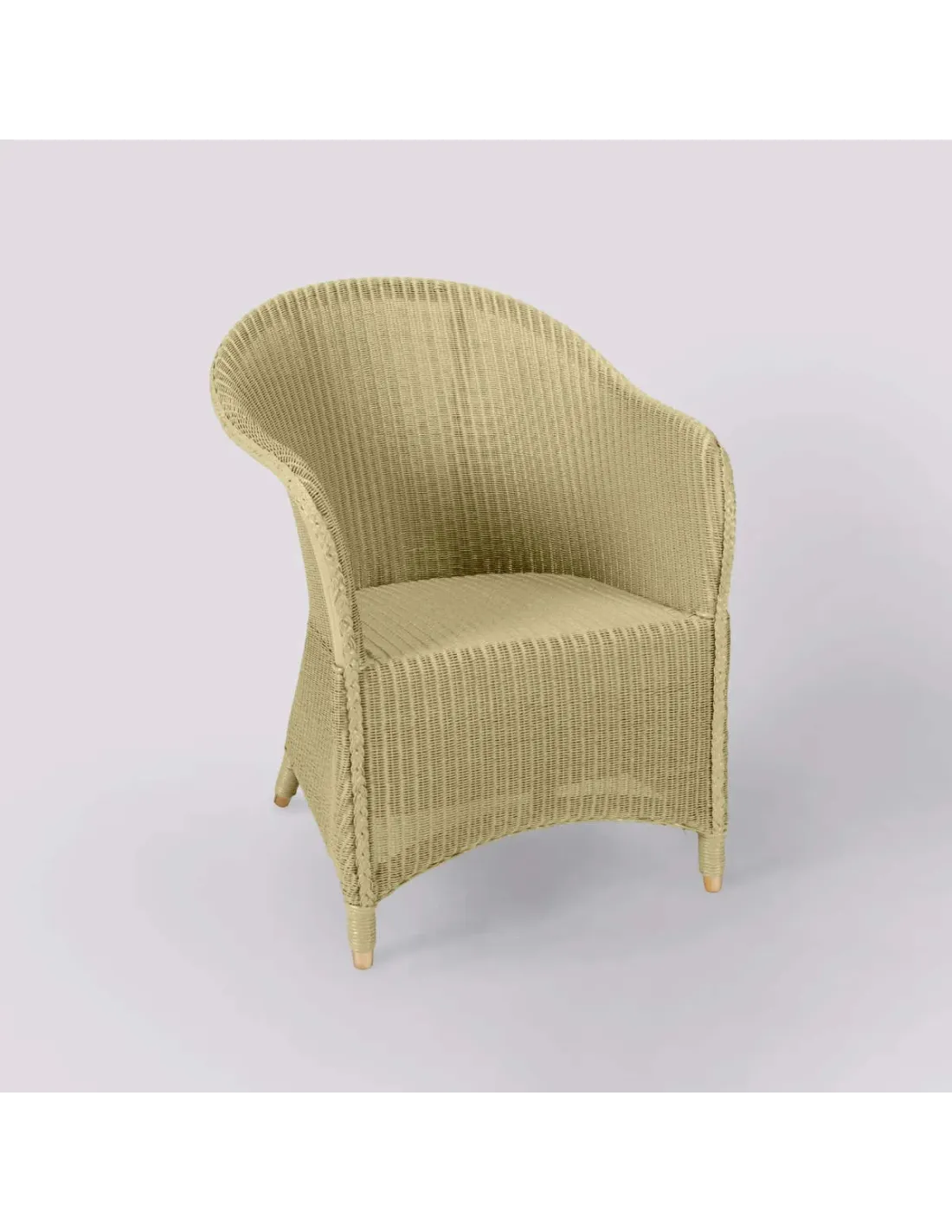 Dimensions : ht 88 x larg 58 X prof 59 cm, hauteur d'assise 42 cm du sol. Largeur d'assise 48 cm, profondeur d'assise 45 cm. Hauteur accoudoirs 63 cm. Structure en rotin, assise renforcée par des sangles. Le tissage "Lloyd Loom" est en fil métallique enrobé de papier kraft recyclé pour la douceur.