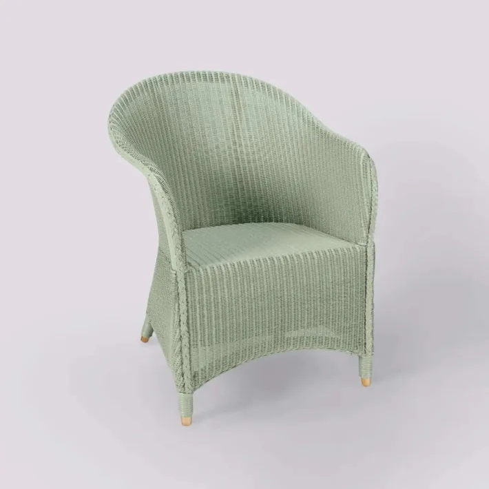 Dimensions : ht 88 x larg 58 X prof 59 cm, hauteur d'assise 42 cm du sol. Largeur d'assise 48 cm, profondeur d'assise 45 cm. Hauteur accoudoirs 63 cm. Structure en rotin, assise renforcée par des sangles. Le tissage "Lloyd Loom" est en fil métallique enrobé de papier kraft recyclé pour la douceur.